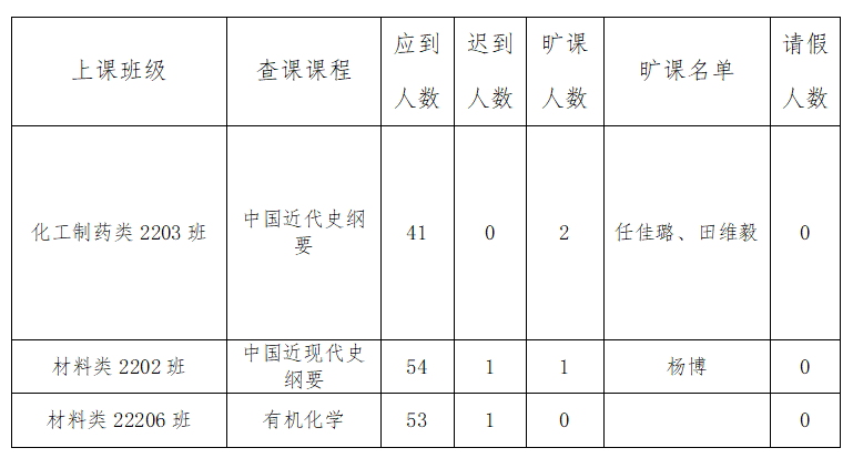 为深入学习贯彻党的二十大精神,构建优良学风建设长效机制,根据学工处要求,4月11日上午,A级内射毛片免费的集中对学生课堂进行了专项检查,其中3-4节课检查结果如下: