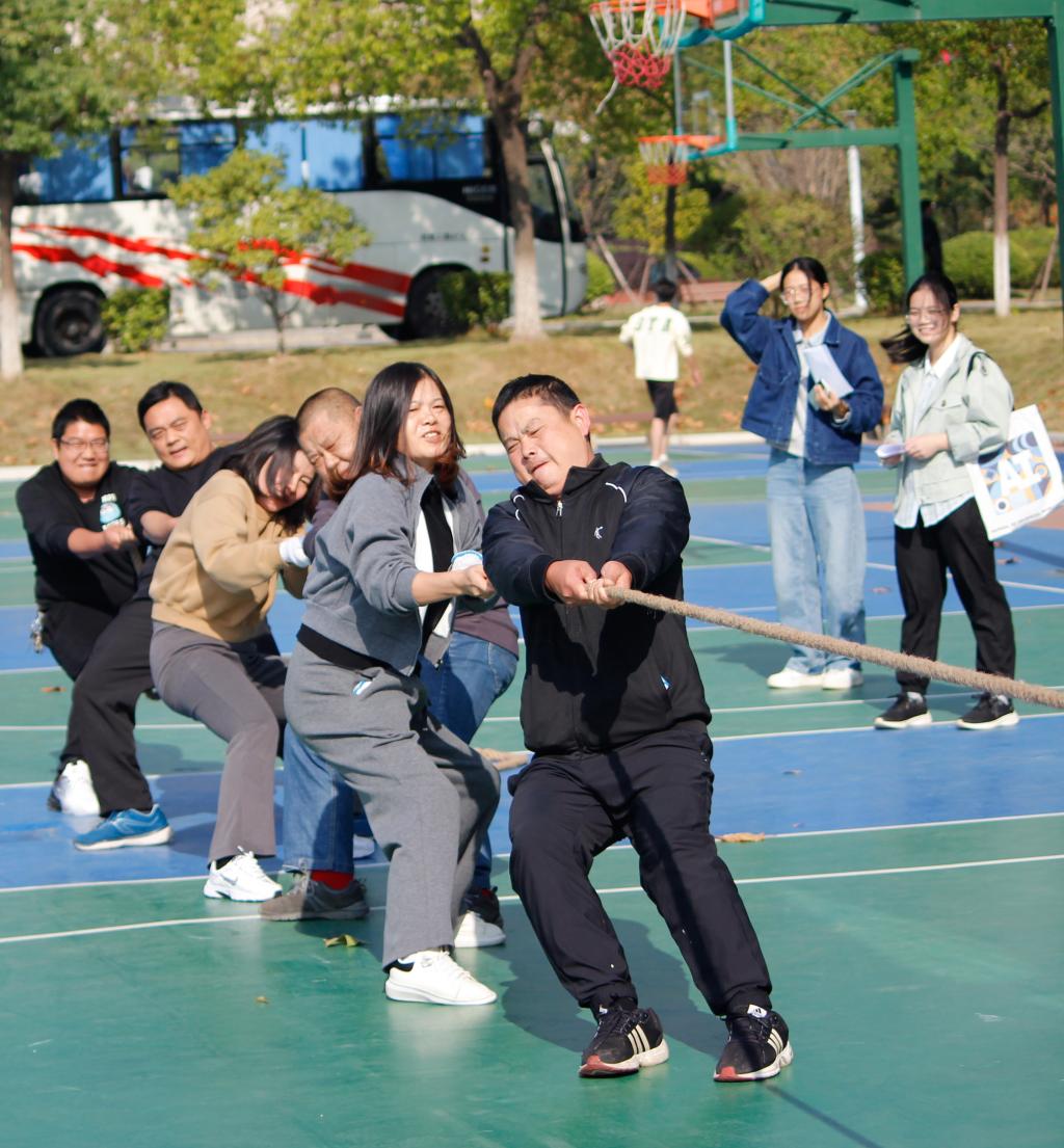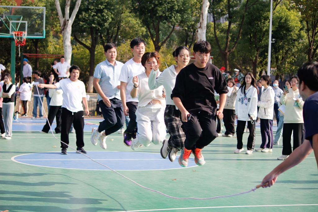 赛场上,“一、二、三,拉!”的响亮口号此起彼伏,拔河比赛尤为激烈,两队势均力敌,吸引了全场师生的目光。跳大绳比赛也紧接着拉开序幕,参赛教职工们根据绳子摇动的节奏调整站位,起初虽有小失误,但在几次尝试与统一口令的指引下,大家逐渐找到了默契,现场气氛热烈,欢声笑语不断。定向投篮项目中,教职工们积极参与,每一次精准的投篮都伴随着观众的欢呼声。