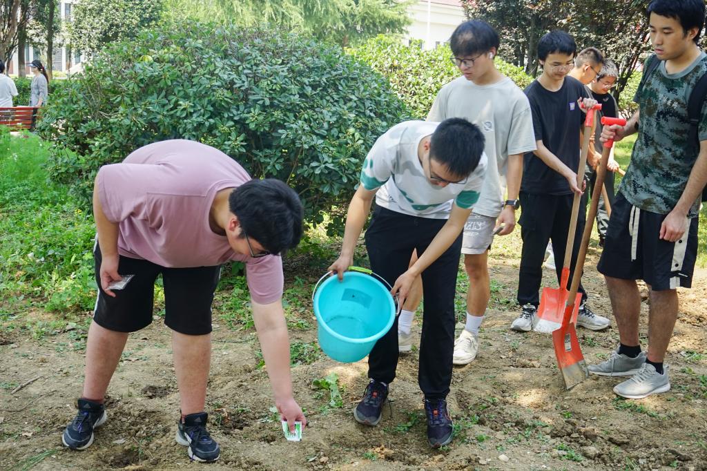 采摘结束后,韩烨丹便带学生们开启今日的第二个任务——播种花种。经过学生除草、挖土、播种、浇水、施肥等一番辛勤劳作之后,将来会有更多不同种类的花在此盛放。花卉协会的学生助理杨时航说:“从3月到现在,我们每周都有三节耕种类的实践课,这类实践课不仅让大家看到了鲜活的劳动成果,共享丰收的喜悦,更让大家直观、深刻地体会到劳动的不易。”