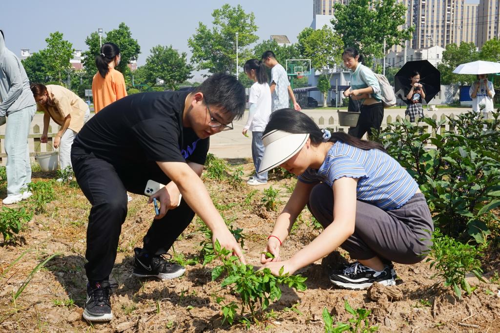 “有的果实还比较小,大家先别急着摘,留着等它们长大。”在一旁指导的韩烨丹和王路笑着提醒道。看着大家笑脸盈盈,情绪高涨,他们也扎进菜园享受采摘的乐趣。