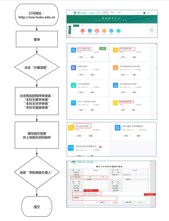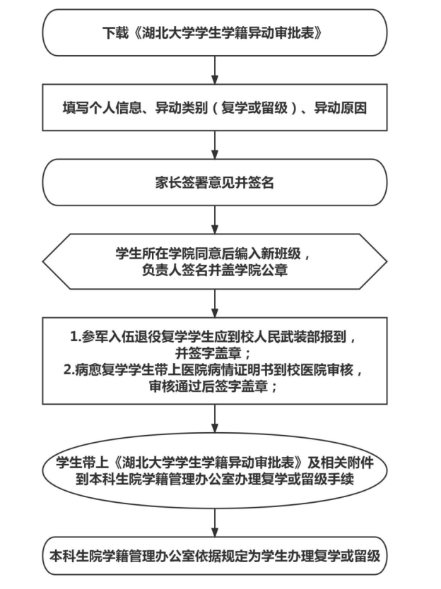 复学、休学、留级均可网上办理。办理流程: